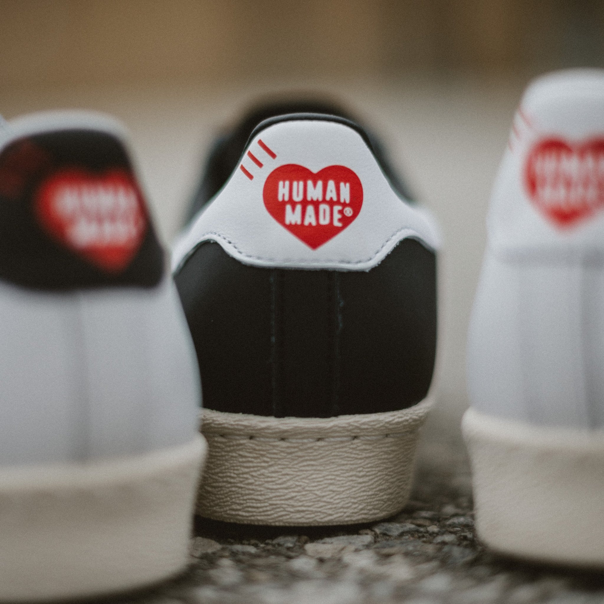 Nigo's Human Made marks the iconic Superstar 80s with the Japanese label's signature branding placed subtly throughout. Human Made hearts replace the usual circular perforations surrounding the Superstar 80s' three-stripes, which are cut from premium suede and emblazoned with custom script. The adidas Originals by Human Made Superstar 80s is finished with Human Made branding at the heel, and a classic rubber shell toe.